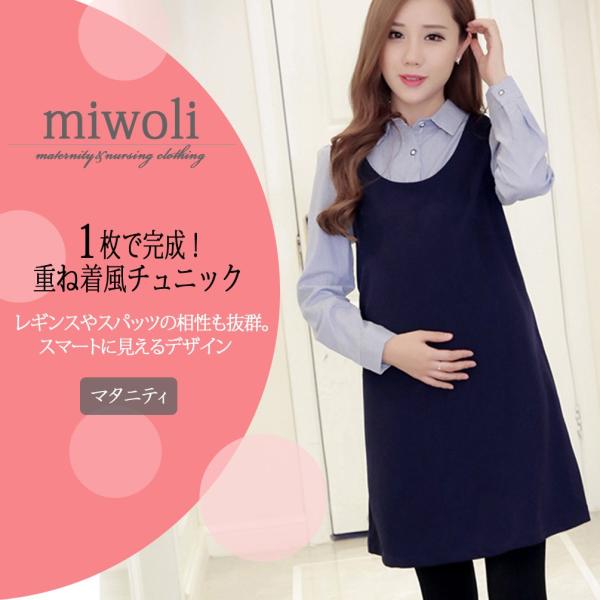 マタニティ ワンピース チュニック 事務服 長袖 フォーマル 妊婦服 重ね着風 Aライン オフィス ネイビー Buyee Buyee 日本の通販商品 オークションの代理入札 代理購入